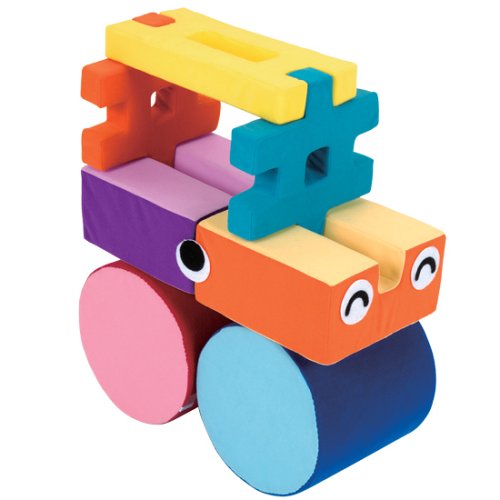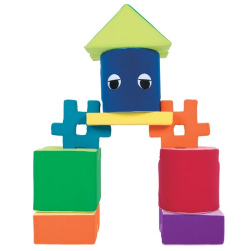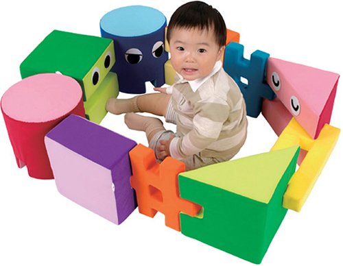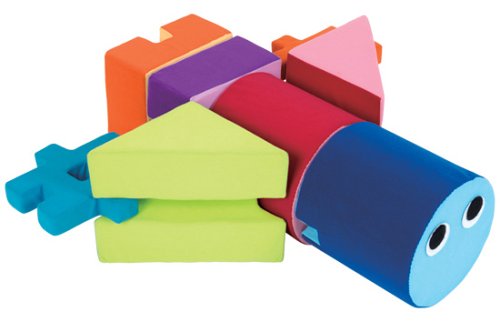 柔らかな布素材でできている大きなブロックが、16個(9種類)入ったセット。ブロックは子どもが体全体を使って遊べる大きさ。