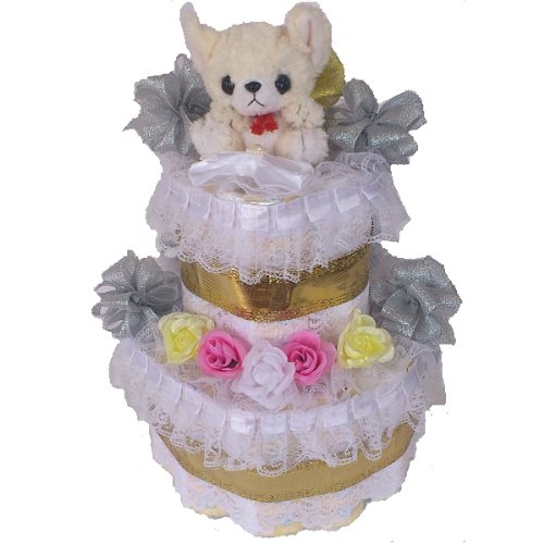 おむつケーキパンパースMサイズ使用【出産祝い】2段ゴールド×シルバー&チワワ出産祝い男の子女の子共用