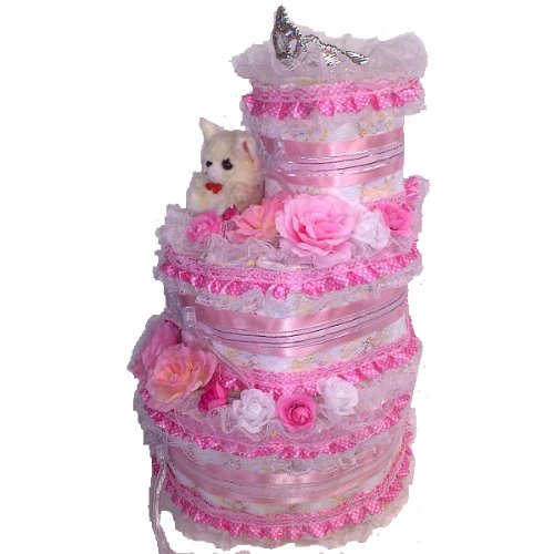 おむつケーキ【3段】デラックス スペシャルプリンセス 出産祝い女の子用オムツケーキ