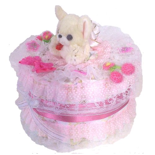宝堂おむつケーキ【1段】姫系チワワのぬいぐるみ付き出産祝い女の子用