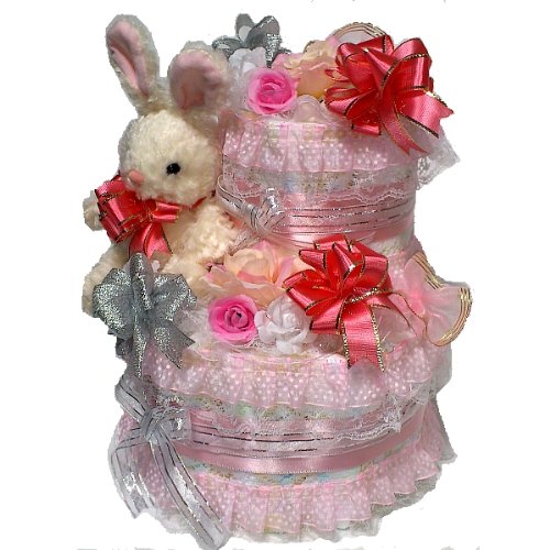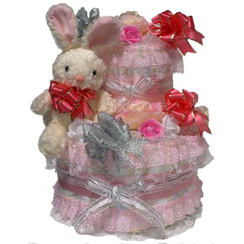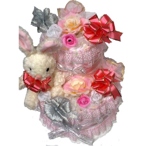 おむつケーキ【2段】パンパースMサイズ使用 プリンセスうさぎ 出産祝い女の子用オムツケーキ