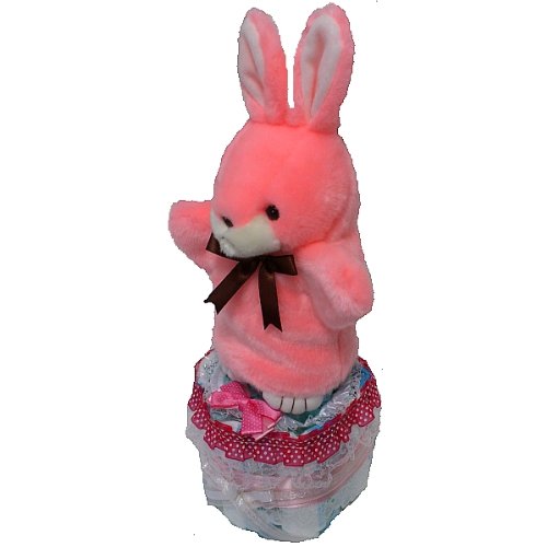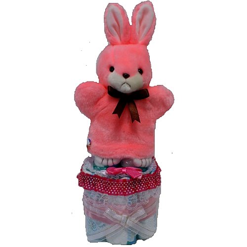おむつケーキ 出産祝いパンパースMサイズ小型2段オムツケーキ ハンドパペット付き女の子用【うさぎ】