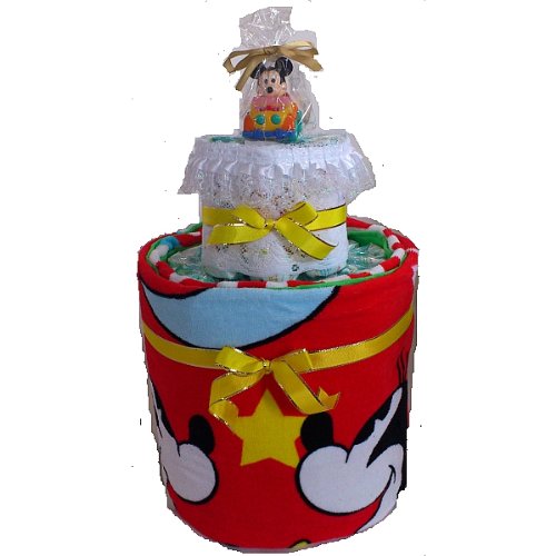 こちらは紙おむつを45枚使用した3段のおむつケーキになります。存在感たっぷりです。とても華やかでゴージャスなおむつケーキになっています。 おむつケーキにディズニーのバスタオルを巻き、ミッキーの車(ゼンマイで動きます)をトッピングしてあります。赤ちゃんの出産祝いに最適です。※ミッキーの車は色が数種類ありますので、画像と違う色になる場合がございます。 おむつは一枚一枚OPPフィルムで個包装していますので清潔・衛生的です。 しばらく飾って楽しめて、その後、紙おむつを使用できる・・・ということで実用的で大人気の「おむつ」でできたデコレーションケーキ。出産祝いなどに最適。