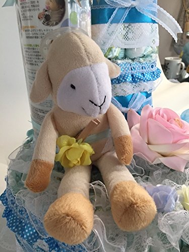 おむつケーキ【3段】パンパースM使用おしゃぶり付き羊のぬいぐるみ 出産祝いオムツケーキ女の子用