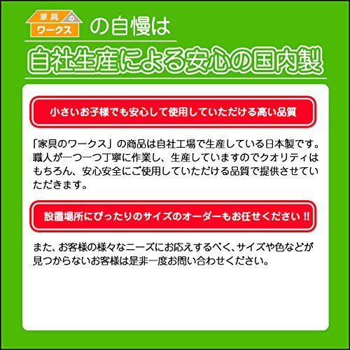「家具のワークス」の商品は自社工場で生産している日本製です。 職人が一つ一つ丁寧に作業し、生産していますのでクオリティは もちろん、安心安全にご使用していただける品質で提供させてい ただきます。