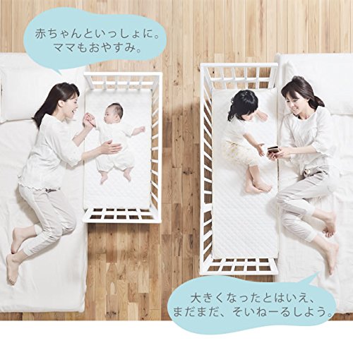 - その他/・生産国 中国 ・対象年齢 ベビーベッドとして/新生児~12ヵ月以内、ロングベッドとして/~4歳頃まで ・塗料 F☆☆☆☆ ・接着剤 F☆☆☆☆ ・個口数 1個口 ・重量 16kg ・耐荷重 棚板5kg (縦桟2本以上渡しておくこと) ・必要工具:プラスドライバー (使用しなくても組み立てられます) ・扉取り外し式(ベビーベッド時のみ使用可能) ・床板すのこ仕様 ・4輪キャスター(すべてストッパー付き) ・取付対応大人用ベッドサイズ/シングルからワイドキングサイズまで。 (床からマットレス上面までの高さ約23~65cmまで。ベッド総幅約220cmまで(ワイドキングサイズ)) ※大人用ベッドのフレームの厚みがマットレスよりも2.5cm以上でているものには取り付けできません。 ・大人用ベッドへの固定用サポートベルト付属 ・ラッピング不可