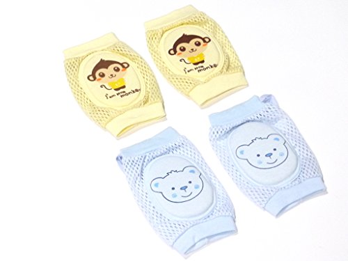 赤ちゃん 膝当て ベビー 乳児用 クッション 膝 サポーター 左右パッド 2セット (猿さん熊さん)