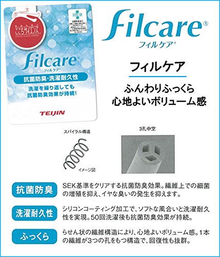 TEIJINのフィルケアは繊維がらせん状のため、ボリュームがあってヘタリにくい中わたになりました。