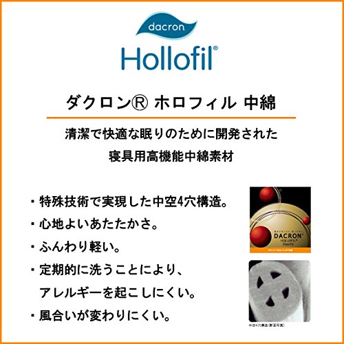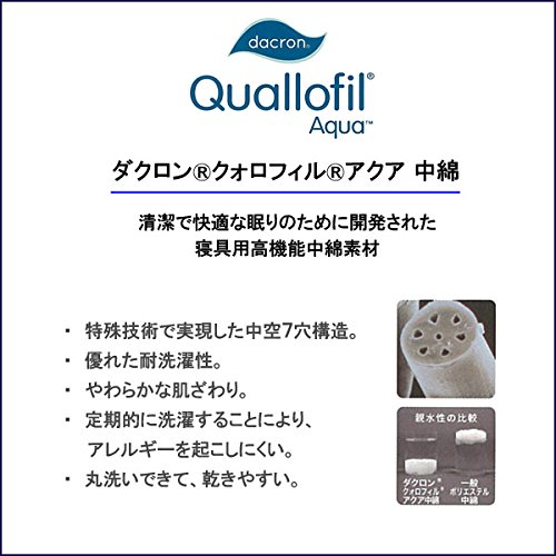 1本の繊維に7つの空気孔を持った(中空7穴)ダクロン・クォロフィル・アクア中綿は、かさ高性に富み、やわらかい肌ざわりが特徴。特殊な繊維の空気孔に空気たっぷり含んで暖かい。保温性に優れ、あったかい空気を逃がしにくく快適に眠れます。優れた耐洗濯性の洗える中綿は、乾きやすい(速乾性)のも特徴です。