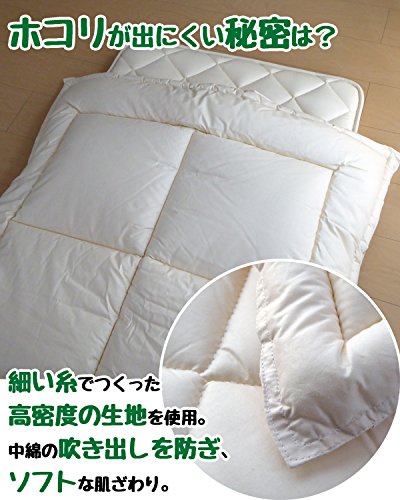 特殊な繊維を中綿に使用しているので心地よく温かいので一年中使える。埃が出にくい高密度生地を側生地に使用しています。