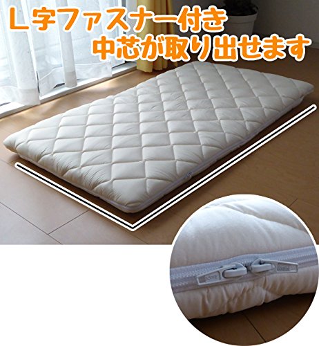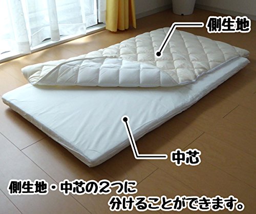 中芯にダクロンホロフィル巻きわたの3層構造タイプの敷布団です。着脱式に敷布団ですので、側生地に巻きわたを入れ、中芯を覆うようになっています。ファスナーが2つ付いたL字ファスナーになっており、L字に開くことで側生地と中芯が取外しが可能になっています。