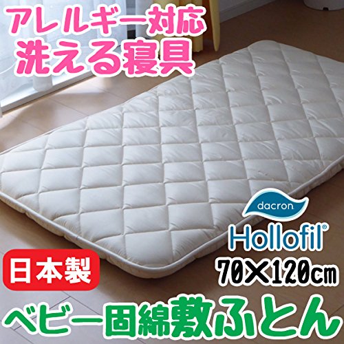 アレルギー対応の洗える中綿を使用し、しっかり赤ちゃんの身体を支え、ホコリが出にくい敷きふとんです。