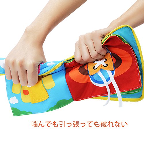 - 【セールスポイント】:布絵本は1歳から3歳ベビーをお薦めする布絵本.ボタンや纽結びやチャックなどのお着換えに必要な手指の動きを繰り返し練習できます。楽しく遊びながら指先トレーニング。巧緻性、生活力、集中力をアップします