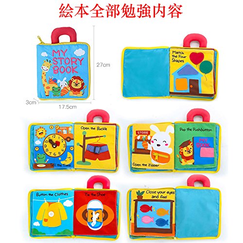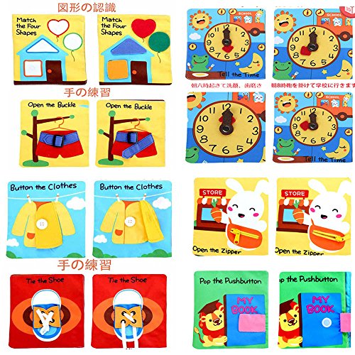 - 【内容】:色?図形?動物?時計の認識、数字?英語の学習、ボタンや紐結びの8種類の勉強内容です。子供の成長に伴う知恵?想像力の開発する布の玩具です.
