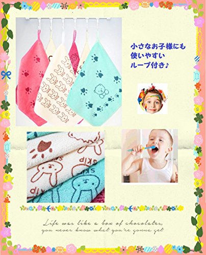 (pkpohs) ソフトタッチ ループタオル アソート まとめ買い うさぎ くま 通園 ループ付き タオル (5枚セット)