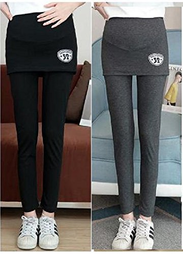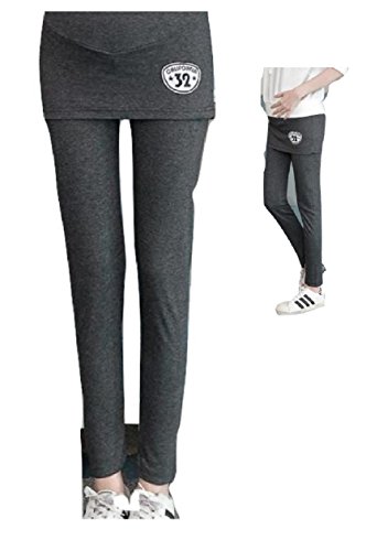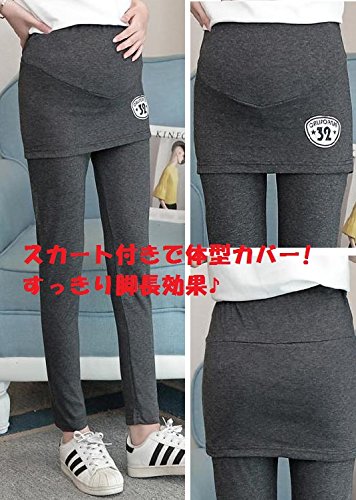 (pkpohs) マタニティ あったか レギンス スカート付き 厚手 スキニー パンツ スカッツ ボトムス 秋冬 ゴム 調節可能 レディース (L, グレー)