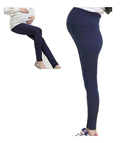 (pkpohs) マタニティ カラフル ストレッチ レギンス 春夏 薄手 スリム 美脚 ゴム 調節可能 (ネイビー)