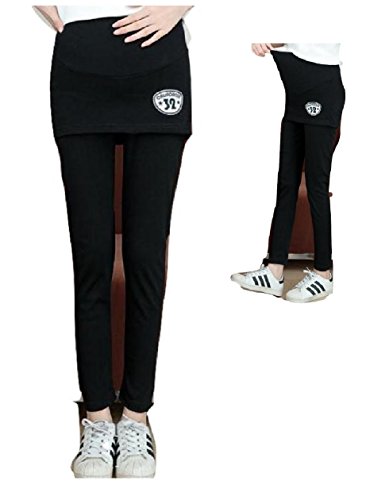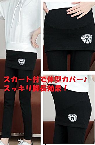 マタニティ あったか レギンス スカート付き 厚手 スキニー パンツ スカッツ ボトムス 秋冬 ゴム 調節可能 レディース (L, ブラック)