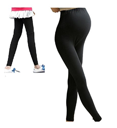 マタニティ カラフル ストレッチ レギンス 春夏 スリム 美脚 ゴム 調節可能 (ブラック)