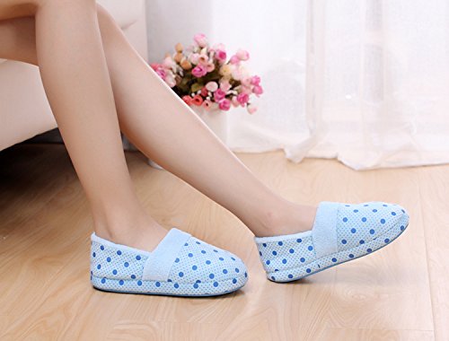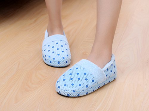 マタニティ 安全 あったか ルームシューズ 冬用 転倒防止 すべり止め効果 ふわもこ ドット柄 上履き 室内履き スリッパ (S(36-37), ブルー)