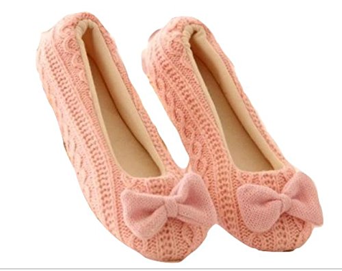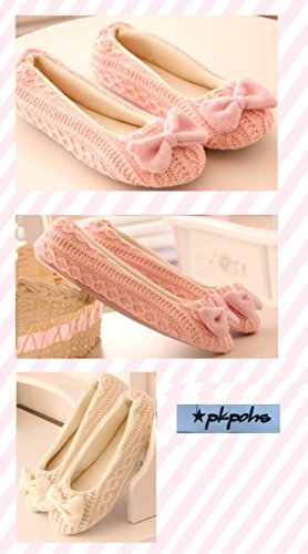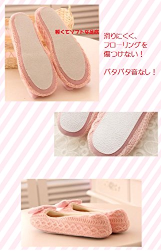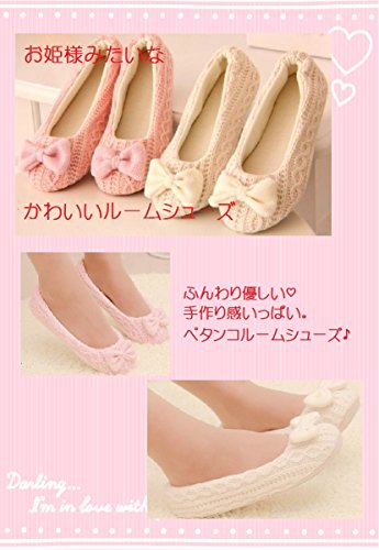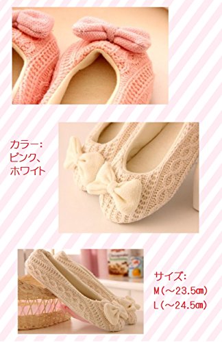 (pkpohs) リボンが キュート ルームシューズ マタニティ 手編み風 上履き 室内履き スリッパ (M, ピンク)