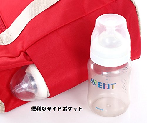 マザーズバッグ 2WAY [ホイッスル セット] 多機能 ショルダー トートバッグ シンプル 軽量 大容量 (レッド)