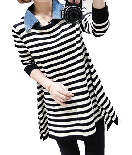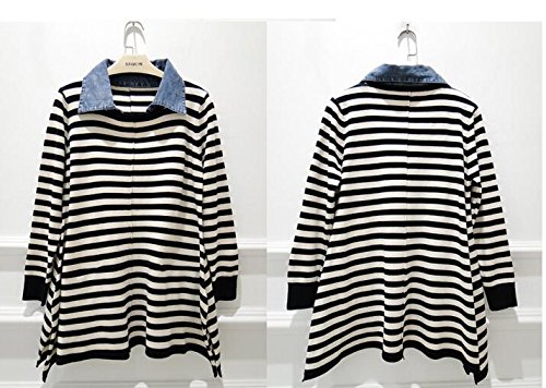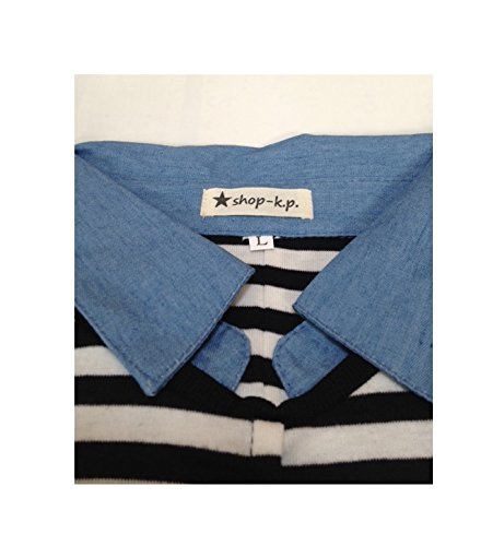 shop-k.p. マタニティ チュニック プルオーバー ボーダー デニム 襟付き 長袖 トップス カジュアル 通勤 授乳服 (L)
