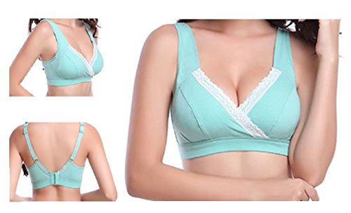 サラっと 快適 マタニティ ハーフトップ 授乳 兼用 ブラ クロスオープン 産前 綿 ブラジャー (34/M, グリーン)