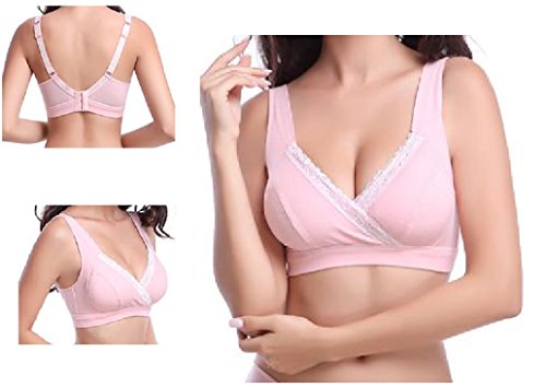 サラっと 快適 マタニティ ハーフトップ 授乳 兼用 ブラ クロスオープン 産前 綿 ブラジャー (34/M, ピンク)