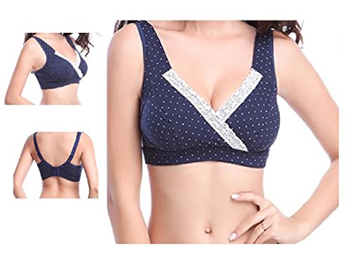 サラっと 快適 マタニティ ハーフトップ 授乳 兼用 ブラ クロスオープン 産前 綿 ブラジャー (38/XL, ネイビードット)xl