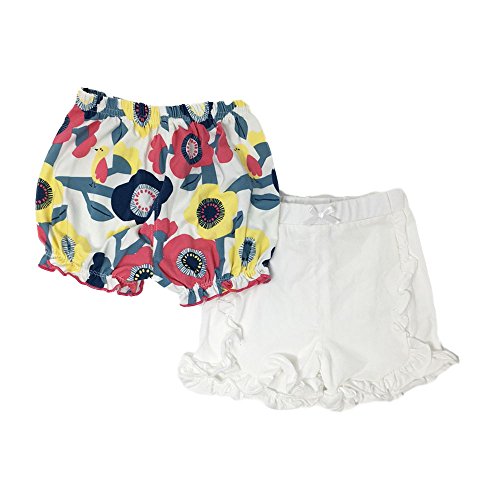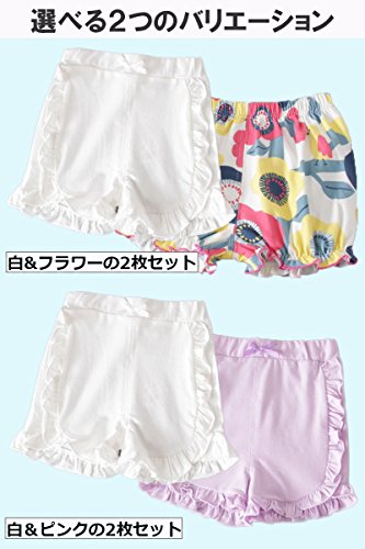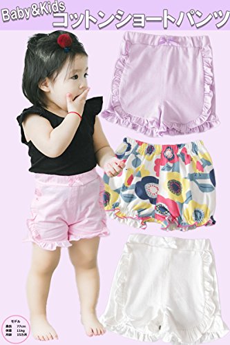 (pkpohs) ショートパンツ ゴム パンツ ベビー キッズ 短パン ゴムパン 春夏 夏 女の子 ハーフパンツ (36M, 花・白)