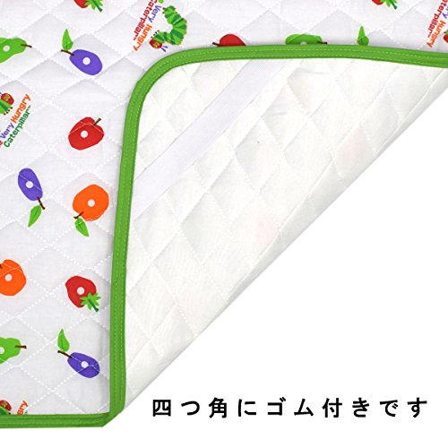 / ERIC CARLE(エリックカール)はらぺこあおむし敷きパットです。 / かわいいはらぺこあおむしのプリント入りキルトパットです。裏側にはお布団に引っ掛けられるゴム付きなのでズレも防止します。 / 表地 : ポリエステル65%・綿35% / 裏地 : ポリエステル100% / 中綿 : ポリエステル100% / /
