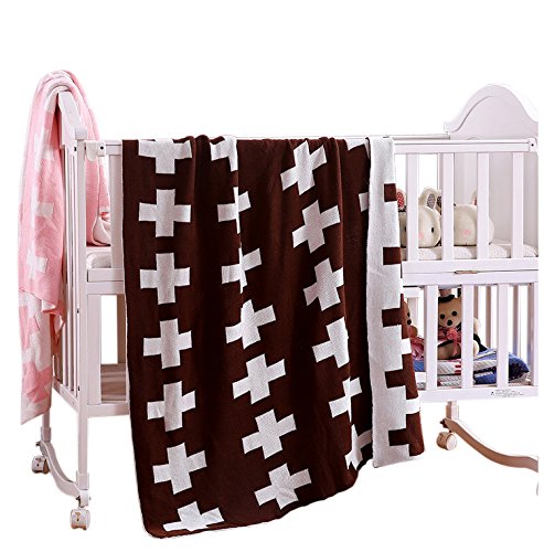 【小物雑貨くりた屋】秋冬活躍!被らないオシャレなブラウン色♡コットン100%ブランケット♡(クロス柄) ニット綿 ブランケット ベビー キッズ レディース 寝具 ガーゼケット 毛布 出産祝い 誕生日プレゼント ギフト (茶 )