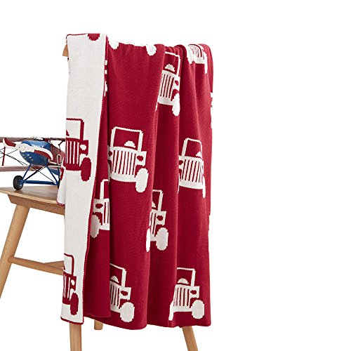【小物雑貨くりた屋】秋冬活躍!年中使えるクルマ柄♡コットンニットのブランケット 男の子 出産祝い 誕生日プレゼント 毛布 (赤)