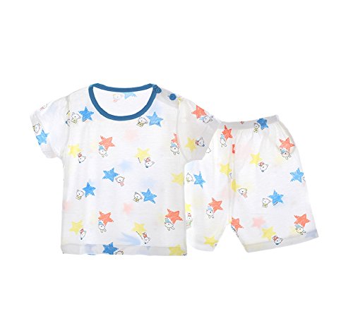 Masonanic ベビーパジャマ 半袖 ベビー服 竹繊維 キッズ 男の子 女の子 ルームウェア スター柄 上下 2点セット 部屋着 幼児 薄手 (タグ75/130cm/身長118-128cm, ブルー)