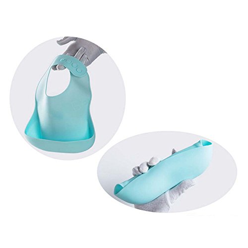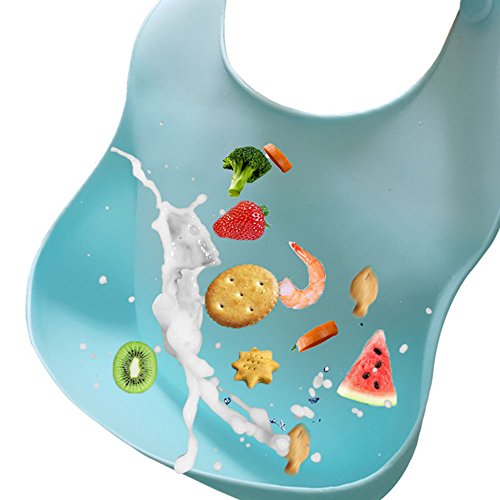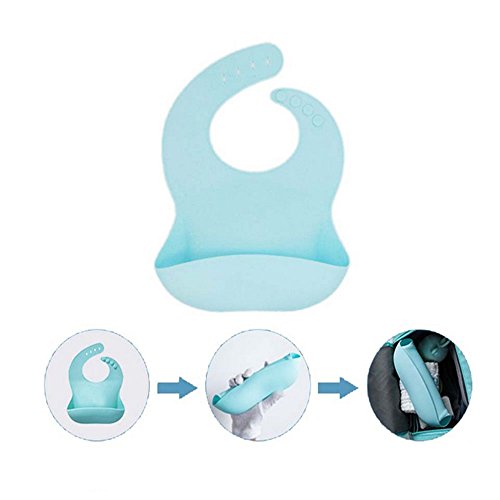 山の奥 赤ちゃん エプロン 赤ちゃん スタイビブ 食事用 よだれかけ 赤ちゃんビブ 漏れ防止大きいポケット付き ソフトスタイ ベビー 防水 食事エプロン 水洗い可 シリコン 男の子 女の子 キッズ サイズ調整 持ち運び 清潔 セット (ブルー)
