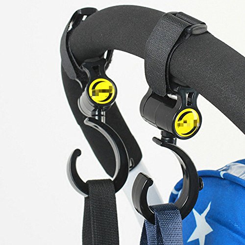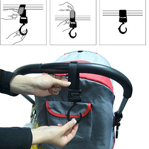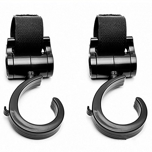 フック部分が360度回転するので、装着時にフックの向きを気にする必要はありません。 ある程度の厚みと幅があるフックだから、幅のある流行りのマザーズバックの持ち手もフィットします。 様々なものをしっかりと掛けられ、ベビーカーライフをはじめ、日常生活に活躍できるフックです。