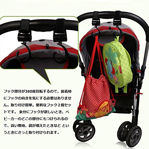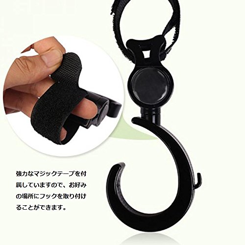 山の奥 ベビーカー フック ベビーカー荷物フックにも 自転車のハンドルやスーツケースにも使える おすすめマルチフック 360度回転 マジックテープ式 2枚