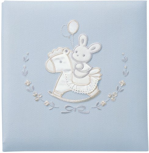 サンヨー 誕生アルバム Lサイズ/100年台紙・ビス式 オルゴール付 ブルー うさぎ