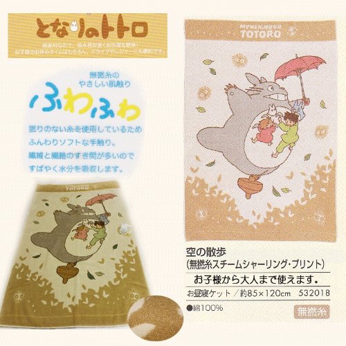 【ジブリー/となりのトトロ/空の散歩】限定お昼寝ケット(お子様から大人まで使えます。)素材:綿100%/無撚糸スチームシャリングプリント加工/サイズ:85cmx115cm