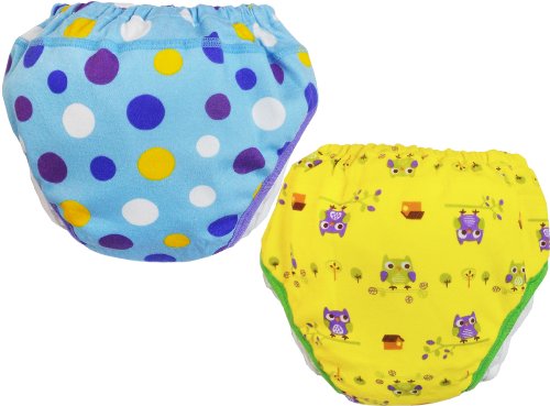川本産業 FURERUMO 横もれガードトレーニングパンツ 2枚組 3層 90cm ドットブルー×ふくろうイエロー