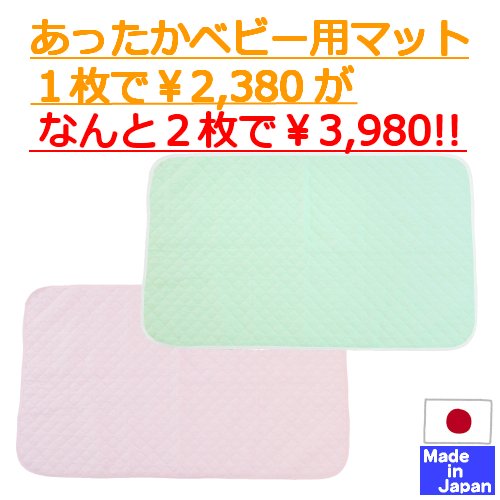 あったか発熱保温敷きマット 2枚組 日本製 ベビー用 70×120cm (ピンク×グリーン)