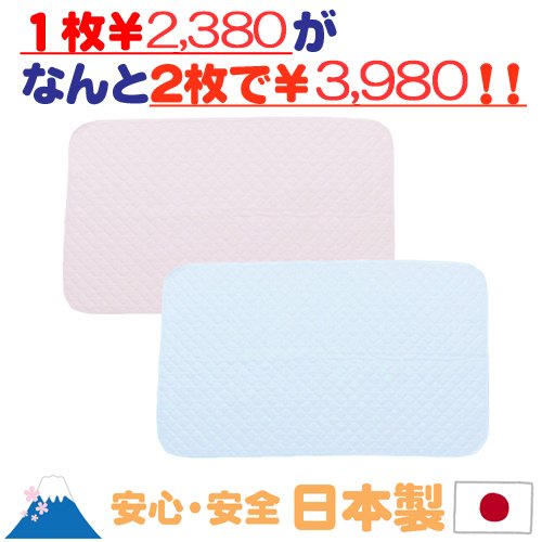 ★日本製★新生児から使える吸汗・速乾・ちょっぴりひんやり感の敷きマット2枚組 (ピンク×サックス) ベビー用 70×120cm 敷マット ひんやり シーツ