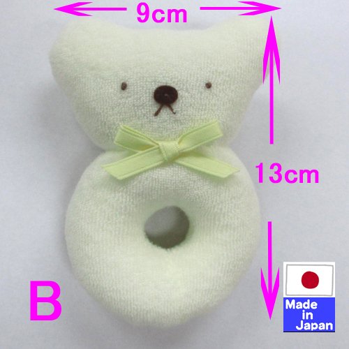 くまさんガラガラ(鈴入り) パイル素材 日本製 おもちゃ (B ドーナツ型)