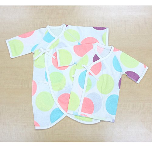 大水玉柄肌着セット(外縫い)(短肌着+コンビ肌着) ミックス 綿100% オールシーズン素材 日本製