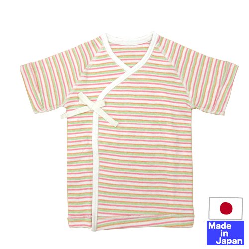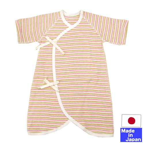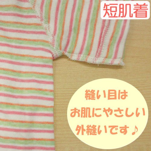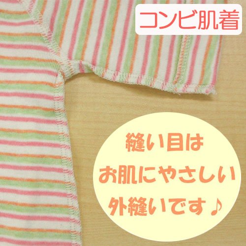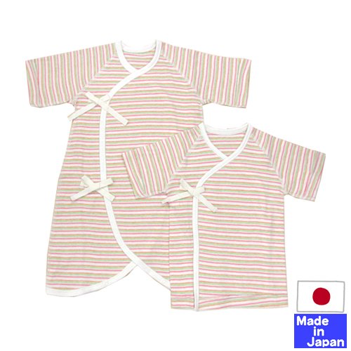 ★日本製★やわらかフライス ボーダー柄 新生児 肌着セット(ピンク系)(短肌着+コンビ)(外縫い) 綿100%