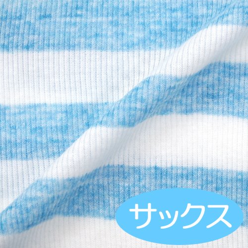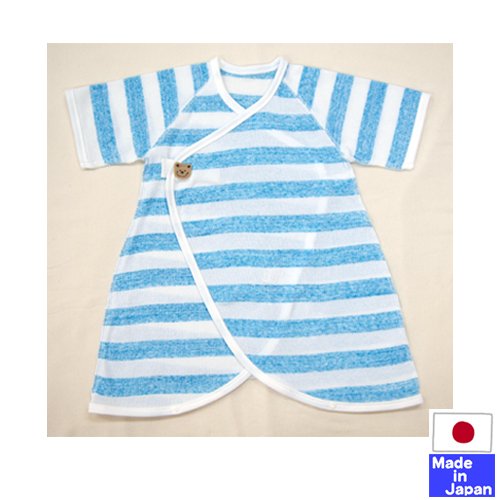 ★日本製★ワンタッチテレコフライスコンビ肌着(太ボーダー・サックス)新生児50-60cm 綿100% 外縫い