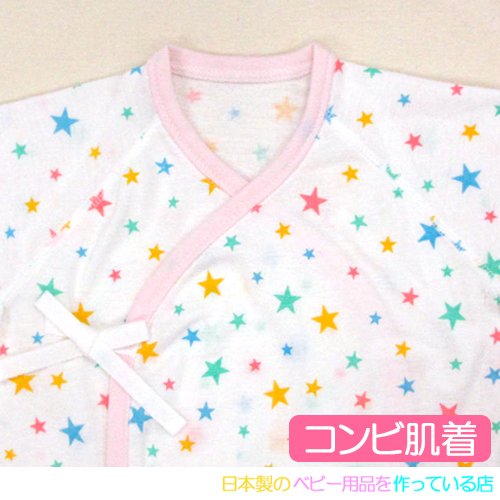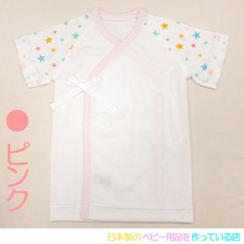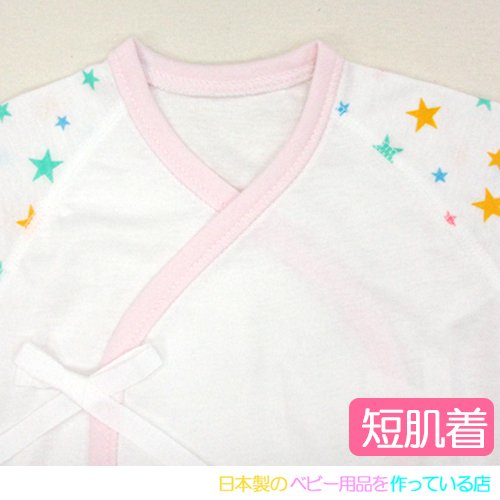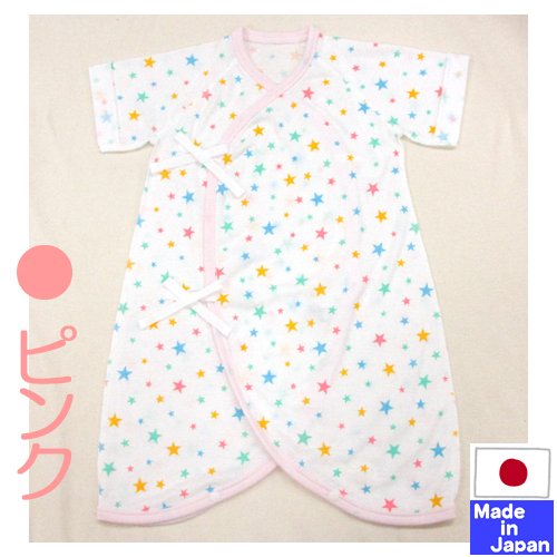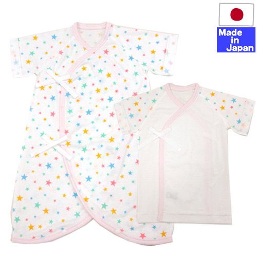 ★日本製★星柄フライス肌着セット(コンビ肌着+短肌着) 外縫い サイズ50-60cm 綿100% (ピンク)