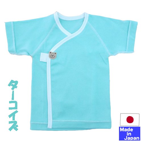 ★日本製★新生児ワンタッチカラーフライス短肌着 サイズ50-60cm 綿100% (ターコイズ) (マジックテープタイプ)