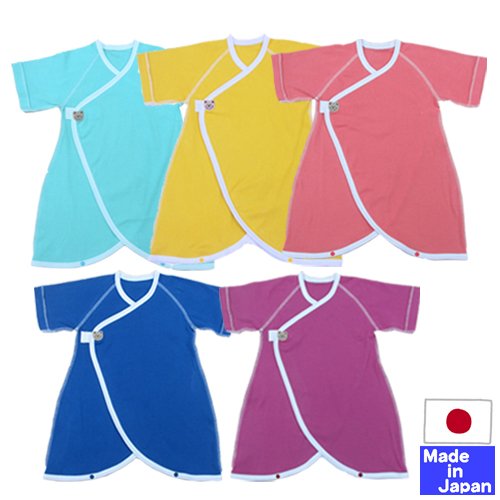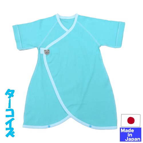 ワンタッチカラーフライスコンビ肌着  サイズ50-60cm 綿100% 日本製 (ターコイズ)(マジックテープタイプ)